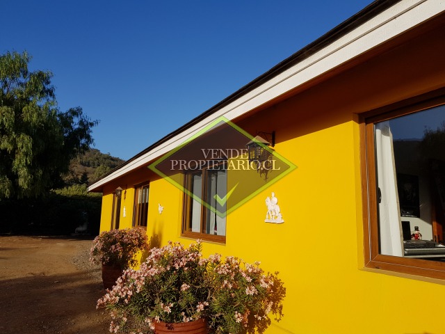 Descripción: 250/ 5200 metros cuadrados. Acogedor Bungalow amplio hall living con chimenea, amplio comedor y cocina, lavadero y dormitorio de servicio cuatro dormitorios ppal en suite, dos walking closet más otro baño completo sala de estar, ventanas termo panel, quincho, horno de barro, bodega, estacionamiento para 4 autos, agua para riego, y agua potable. A pocos metros de avenida que conecta con Olmué.