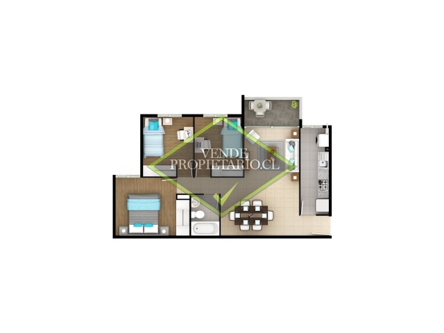 Consta de 3 dormitorios, 1 baño, cocina equipada, living, comedor, balcon