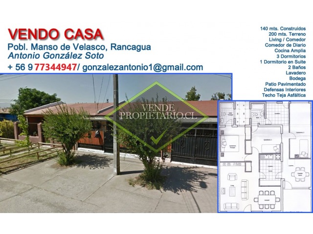 Descripción: Casa en muy buena ubicación en la ciudad de Rancagua, con locomoción para varios sectores de la ciudad, a una cuadra del paradero de buses a Santiago.